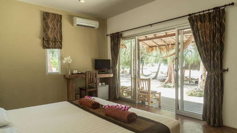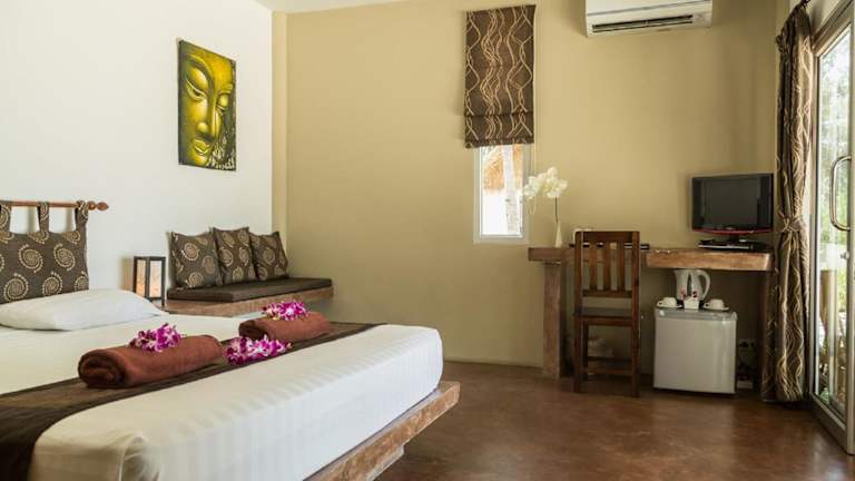 Jeder Bungalow im Angkana Bungalows ist komfortabel eingerichtet und verfügt über Annehmlichkeiten wie Klimaanlage, Flachbild-TV und Smart-TV. Ein gemütlicher Sitzbereich, ein Safe und ein Kühlschrank sind ebenfalls vorhanden. Das private Badezimmer ist mit einer Dusche und kostenlosen Pflegeprodukten ausgestattet.