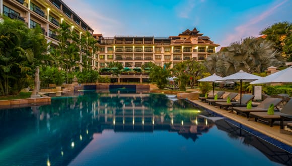 Das Angkor Miracle Resort & Spa liegt gegenüber dem kambodschanischen Kulturdorf in Siem Reap. Es befindet sich in der Nähe des Stadtzentrums und ist von Geschäften, Einkaufszentren und Pubs umgeben. Die Tempelanlage Angkor Wat ist nur etwa 15 Minuten entfernt und der internationale Flughafen Siem Reap ist in ca. 5 Minuten erreichbar.