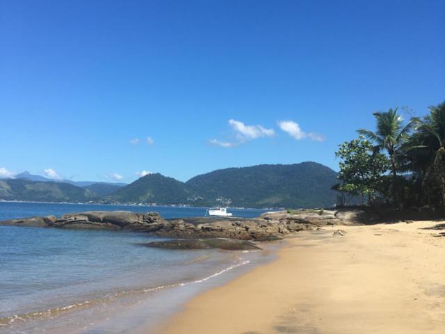 Angra dos Reis - Casa pé na areia na Praia de Fora - Ponta Leste bietet einen eigenen Strandbereich sowie eine schöne Terrasse mit Grillmöglichkeiten. Die Unterkunft ist direkt am Strand gelegen und bietet einen einzigartigen Zugang zur Veranda/Pati und umfasst kostenlose Parkmöglichkeiten. Es handelt sich um ein Ferienhaus in privater Führung.