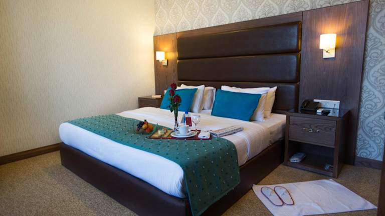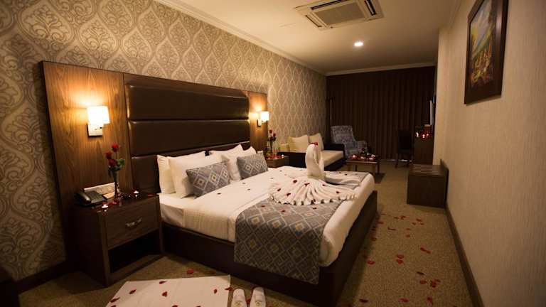 Das Ankawa Royal Hotel & Spa in Erbil bietet seinen Gästen einen luxuriösen Aufenthalt mit erstklassigen Annehmlichkeiten. Genießen Sie den Innenpool, den Wellnessbereich und das kostenfreie WLAN in allen Bereichen des Hotels. Die eleganten Suiten sind klimatisiert und verfügen über einen Balkon, während das Restaurant des Hotels verschiedene internationale Gerichte serviert. Entspannen Sie sich bei einer Massageanwendung oder nutzen Sie das kostenfreie Fitnesscenter und die Sauna. Die zentrale Lage ermöglicht es Ihnen, die Zitadelle von Erbil und andere Sehenswürdigkeiten bequem zu erreichen.