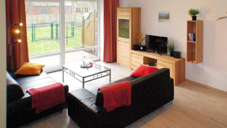 Die Ferienwohnung verfügt über zwei Schlafzimmer, ein Wohnzimmer und eine voll ausgestattete Küche mit Kühlschrank und Kaffeemaschine. Es ist ein Badezimmer mit Dusche und Haartrockner vorhanden. Zur Ausstattung gehört ein TV mit Kabelkanälen. Eine Terrasse ist ebenfalls verfügbar.