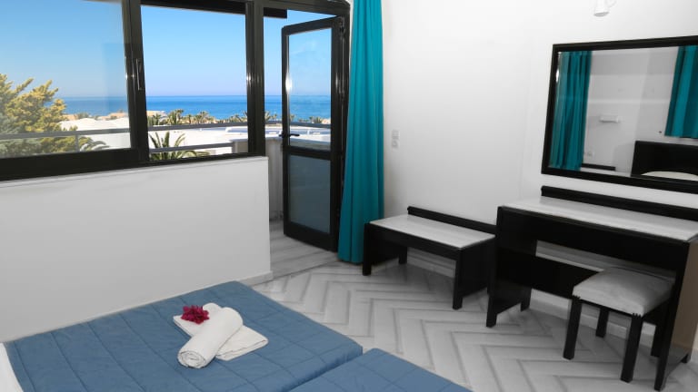 Die Zimmer im Anna Maria Village sind komfortabel und luxuriös eingerichtet und bieten viel Platz zum Entspannen. Jedes Zimmer verfügt über ein Wohnzimmer, ein eigenes Bad, eine Küchenzeile, ein Schlafzimmer und einen Balkon oder eine Terrasse mit Blick auf das Meer oder den schönen Garten. Zur Ausstattung gehören ein Kühlschrank, Klimaanlage und Sat-TV.