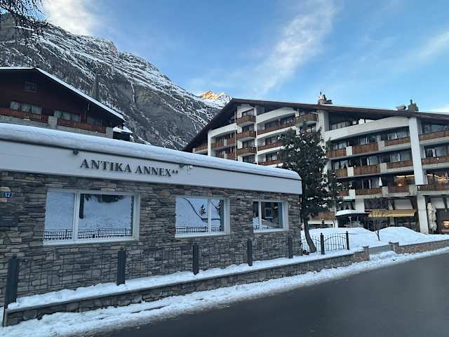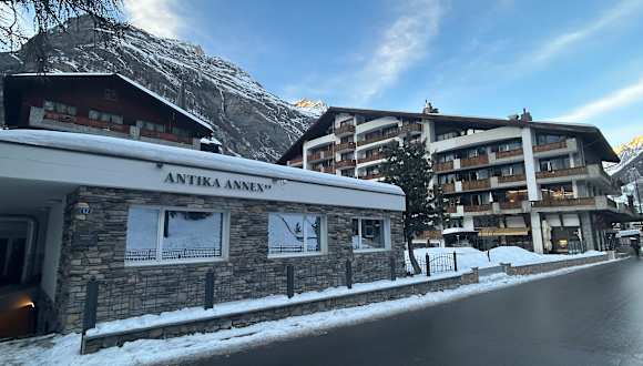 Sie profitieren vom reichhaltigen Frühstücksbuffet, der Benutzung des Wellness-Bereichs (mit Whirpool, Sauna und Dampfbad), dem freien Internetzugang und allen Annehmlichkeiten des 3-Sterne Komforts im 20m entfernten Hauptgebäude Hotel Antika. Der Skiraum ist mit Skischuhheizung ausgerüstet und nach wenigen Schritten zu Fuss bringt Sie der Skibus in kürzester Zeit zu allen Skigebieten von Zermatt.