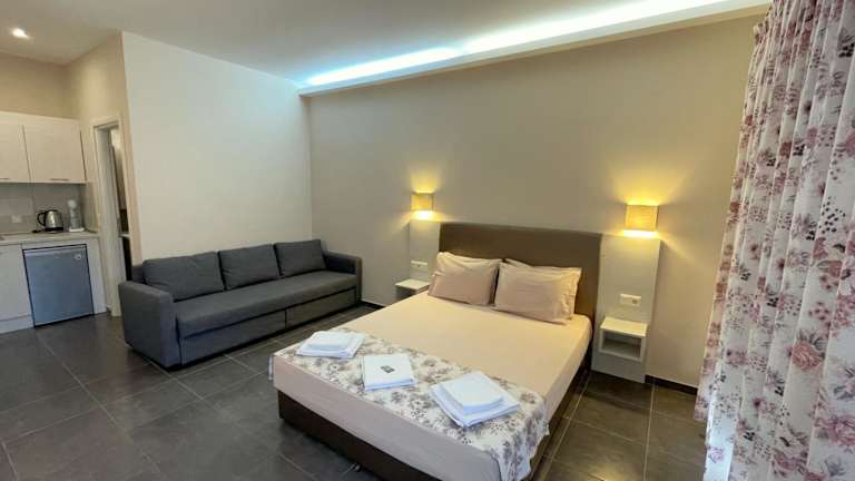 Die Annmari Studios bieten einen Kinderspielplatz, der ideal ist, um die kleinen Gäste zu unterhalten. Die nahe gelegene Küste bietet verschiedene Wassersportmöglichkeiten wie Schwimmen, Schnorcheln und Bootsfahrten. Erkunden Sie die Umgebung und entdecken Sie die Schönheit der Insel Thassos. Der internationale Flughafen Kavala ist etwa 34 km entfernt und bietet eine gute Anbindung an die Unterkunft.