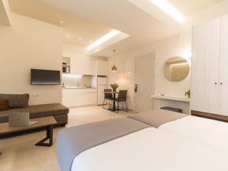 Das ANTEL Suites & Apartments in Chania bietet klimatisierte Unterkünfte mit kostenfreiem WLAN und ist nur 1 km vom Strand Nea Chora entfernt. Die geräumigen Apartments verfügen über Balkone, voll ausgestattete Küchen und moderne Badezimmer. Fahrräder können vor Ort gemietet werden, um die Umgebung zu erkunden. Die zentrale Lage des Hotels ermöglicht es den Gästen, beliebte Sehenswürdigkeiten wie den Strand Koum Kapi und die städtische Kunstgalerie von Chania bequem zu erreichen.