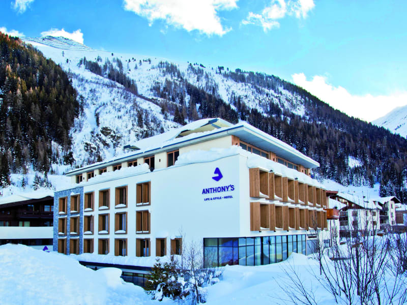Mitten in der Fußgängerzone von St. Anton am Arlberg steht das im Oktober 2012 eröffnete Design-Hotel Anthony's. Die zeitgemäße Architektur akzentuiert das traditionelle Ortsbild der führenden Skimetropole. Das Anthony's bietet alles unter einem Dach: Pizzeria, Steakhouse, American Bar, Intersport Arlberg, Bipa und in der obersten Etage: den Sky-Spa, die spektakuläre Wellness-Oase.