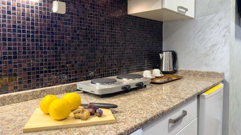Die Wohneinheiten sind mit einer modernen Küche ausgestattet, die einen Kühlschrank und einen Geschirrspüler umfasst. Jede Suite hat darüber hinaus einen Safe, einen Satelliten-Flachbild-TV, Bügelmöglichkeiten, einen Schreibtisch und einen Sitzbereich mit einem Schlafsofa. Ein eigenes Badezimmer ist ebenfalls vorhanden und bietet eine Dusche, kostenlose Pflegeprodukte, einen Haartrockner sowie Hausschuhe.