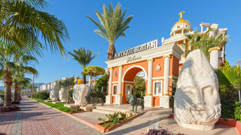 Das im römisch-griechischen Stil gestaltete Hotel verfügt über insgesamt 113 Zimmer, die sich auf zwei Gebäude verteilen. Zu den Einrichtungen gehören eine Empfangshalle mit Rezeption, Sitzgelegenheiten, Lift und WLAN (inklusive). Des Weiteren Buffetrestaurant mit Dachterrasse, Bar, TV-Raum und Wäscheservice. In der Außenanlage befindet sich der Süßwasser-Swimmingpool mit Wasserrutsche, Sonnenterrasse und Pool-/Snackbar. Sonnenschirme, Liegen und Auflagen sind am Pool und am Strand inklusive.