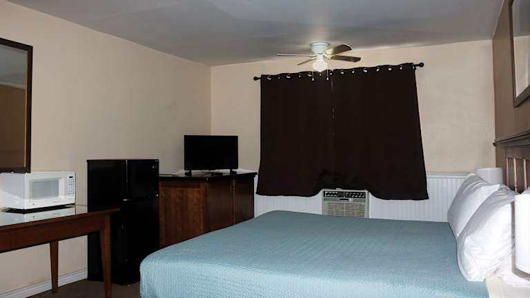 Die Gästezimmer im Antler Motel sind mit einem Schreibtisch, einem Flachbild-TV, einem Kühlschrank sowie einem eigenen Badezimmer ausgestattet. Bettwäsche und Handtücher werden bereitgestellt, um den Komfort der Gäste zu gewährleisten.