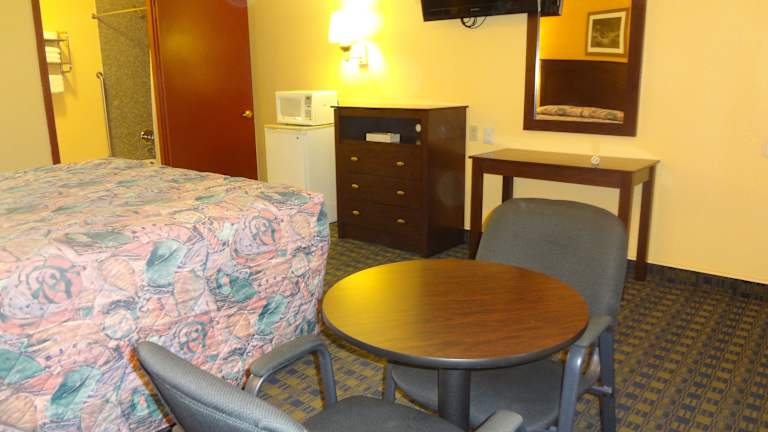Die klimatisierten Zimmer im Antlers Inn Goliad Hotel sind komfortabel und modern eingerichtet. Jedes Zimmer verfügt über einen Flachbild-Sat-TV mit HBO-Filmkanälen für Ihre Unterhaltung. Eine Mikrowelle, ein Kühlschrank und eine Kaffeemaschine sind ebenfalls vorhanden, um Ihren Aufenthalt angenehm zu gestalten. Es gibt auch einen runden Tisch und ein Bügeleisen/-brett für Ihren Komfort.