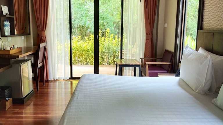 Die Zimmer im Aonang Hill Krabi-SHA Extra Plus sind komfortabel und bieten alles, was Sie für einen angenehmen Aufenthalt benötigen. Sie sind klimatisiert und verfügen über einen Parkettboden und einen Flachbild-TV. Jedes Zimmer hat einen eigenen Garten und einen Balkon, auf dem Sie die frische Luft und die Aussicht genießen können. Die Badezimmer sind mit Duschen ausgestattet, und einige Zimmer verfügen auch über eine Badewanne.