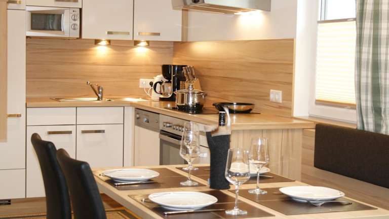 Die Ferienwohnung umfasst zwei Schlafzimmer, ein Wohnzimmer mit Flachbild-TV, eine komplett ausgestattete Küche sowie zwei Badezimmer.