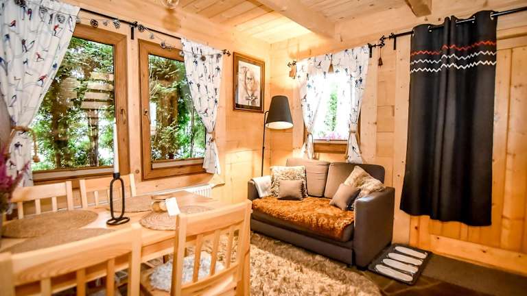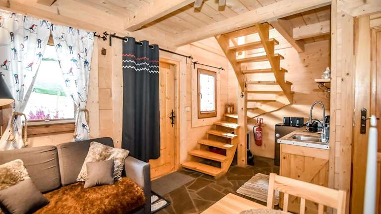 Das Chalet verfügt über ein Schlafzimmer, eine voll ausgestattete Küche mit Kühlschrank und Herdplatte sowie ein Badezimmer mit Dusche und Haartrockner. Handtücher und Bettwäsche werden bereitgestellt.
