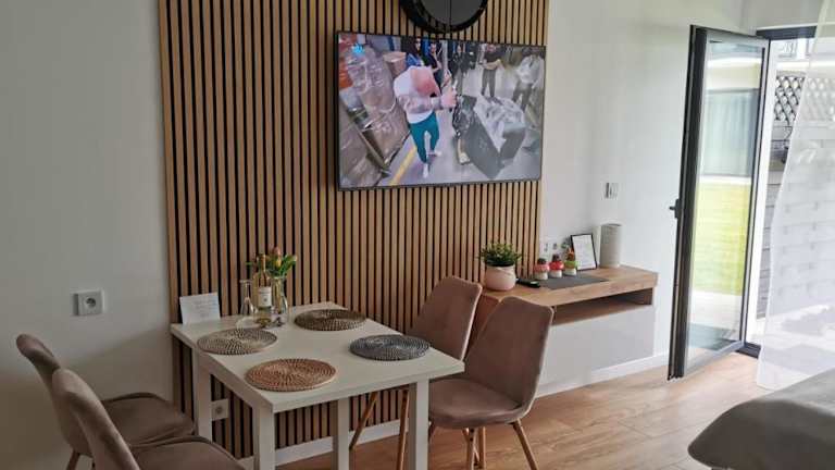 Die Ferienwohnung verfügt über 1 Schlafzimmer, ist klimatisiert und bietet kostenfreies WLAN. Zur Ausstattung gehören ein Flachbild-TV mit Kabelkanälen, eine gut ausgestattete Küchenzeile mit Kühlschrank und Mikrowelle sowie ein Badezimmer mit Dusche.