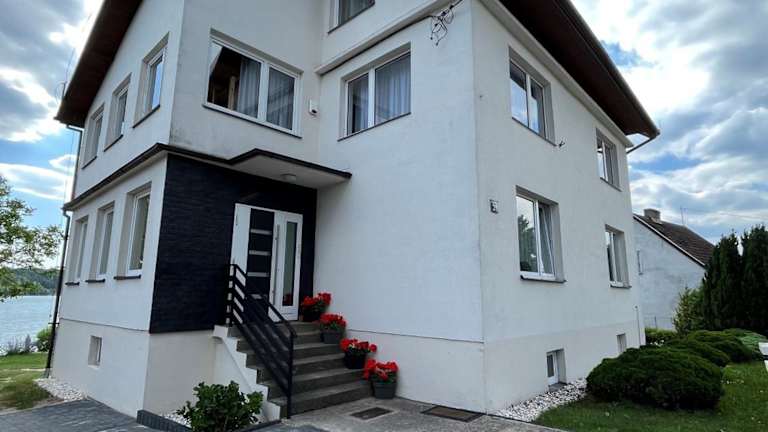 Apartament Aleksandra we Wielu z widokiem na jezioro bietet Übernachtungsmöglichkeiten in einer ansprechenden Umgebung mit einem saisonalen Außenpool, einem Garten und einem eigenen Strandbereich. Die Unterkunft verfügt über eine Terrasse und bietet Grillmöglichkeiten.