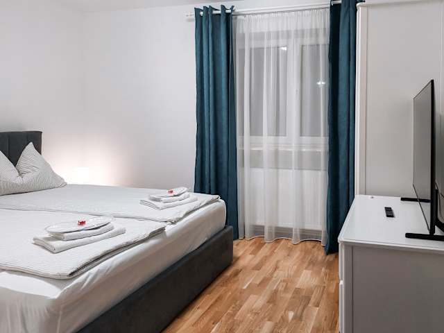Die Wohnung verfügt über ein Schlafzimmer, ein Wohnzimmer, ein Badezimmer mit Dusche und kostenlose Pflegeprodukte. Zur Ausstattung gehören Klimaanlage, kostenfreies WLAN, moderne Möbel sowie Bettwäsche und Handtücher, die nach den Richtlinien der örtlichen Behörden gewaschen werden.