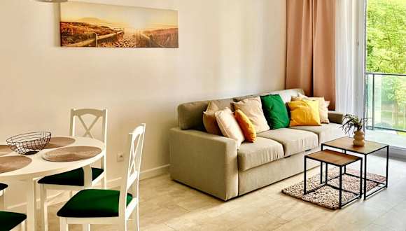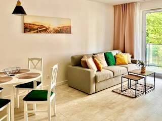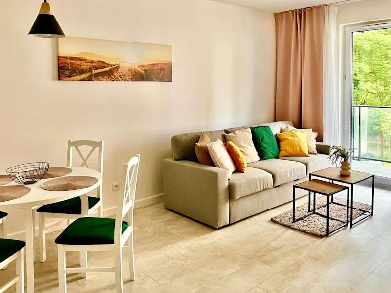 Apartament Boho #Basen#Sauna#Siłownia#Garaż bietet Übernachtungsmöglichkeiten in einer voll ausgestatteten Ferienwohnung. Die Unterkunft bietet einen Balkon, kostenlosen WLAN-Zugang sowie eine Terrasse und einen kostenlosen Privatparkplatz.