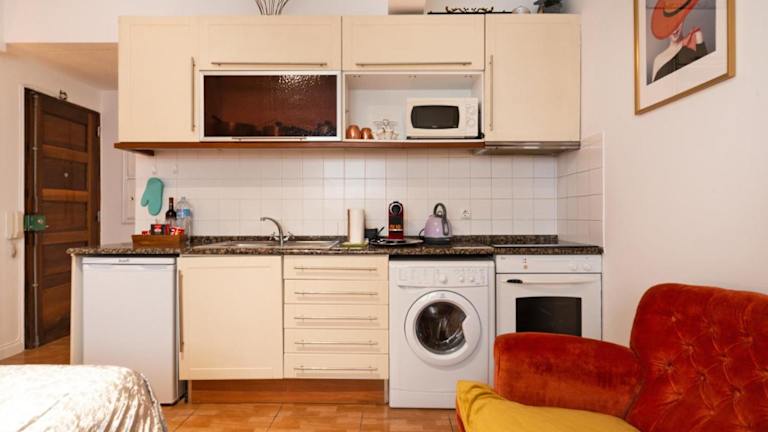 Das Appartement umfasst ein Schlafzimmer, ein Wohnzimmer, ein Badezimmer mit Dusche, Haartrockner und Waschmaschine. Die Ausstattung ist auf die grundlegenden Bedürfnisse zugeschnitten, und Nichtraucherzimmer sind verfügbar. Bitte beachten Sie, dass eine zusätzliche Gebühr für späte Ankünfte anfällt.