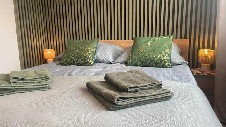 Das Apartment bietet 2 komfortable Schlafzimmer, einen Balkon und eine Terrasse, auf der die Gäste entspannen können. Die voll ausgestattete Küche verfügt über alle notwendigen Geräte wie Mikrowelle und Kühlschrank. Ein Flachbild-Kabel-TV und kostenfreies WLAN sorgen für Unterhaltung und Komfort. Handtücher und Bettwäsche werden gestellt und eine Waschmaschine ist ebenfalls vorhanden.