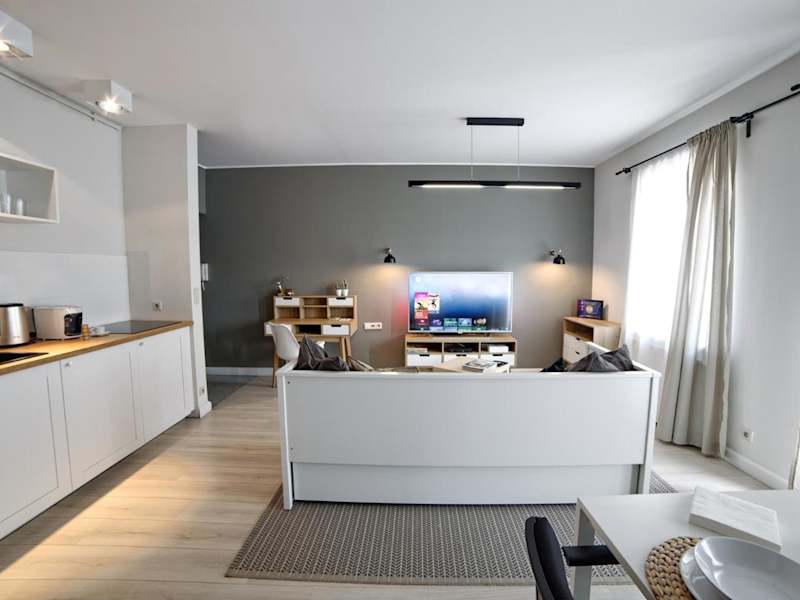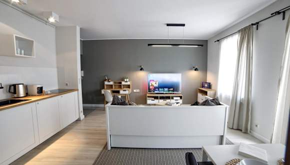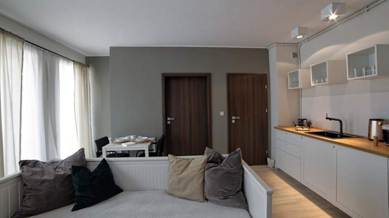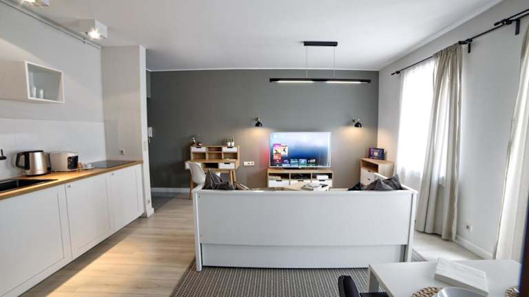 Apartament LAVENDER bietet Übernachtungsmöglichkeiten mit kostenfreiem WLAN. Die Unterkunft umfasst einen Balkon mit Stadtblick, einen Sitzbereich und einen Flachbild-Satelliten-TV. Eine voll ausgestattete Küchenzeile sowie ein eigenes Badezimmer mit Dusche und kostenlosen Pflegeprodukten stehen ebenfalls zur Verfügung. Handtücher und Bettwäsche sind gegen Aufpreis erhältlich.