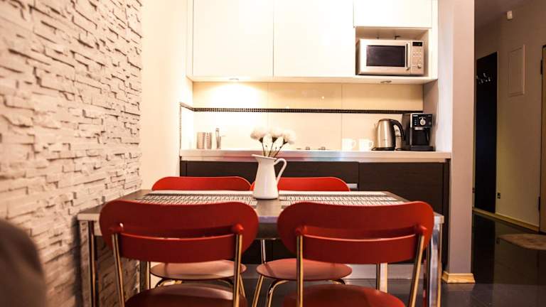 Das Apartment ist mit einem Bügeleisen/-brett, einem CD-Player sowie einem Wasserkocher und einem Kühlschrank ausgestattet. Der Essbereich sowie ein eigenes Bad mit Dusche und Haartrockner runden die Ausstattung ab. Die Unterkunft bietet zudem Nichtraucherzimmer und familienfreundliche Optionen.