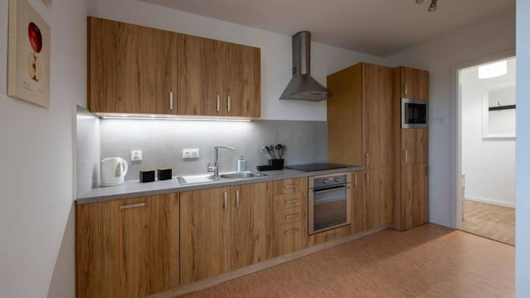 Die Ferienwohnung verfügt über zwei Schlafzimmer, ein Wohnzimmer, einen Flachbild-TV sowie eine gut ausgestattete Küchenzeile mit Kühlschrank und Geschirrspüler. Es gibt ein Badezimmer mit Dusche, und Handtücher sowie Bettwäsche werden bereitgestellt.