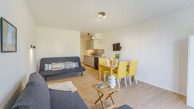 Die Ferienwohnung besteht aus zwei Schlafzimmern, einem Wohnzimmer sowie einer voll ausgestatteten Küche, die über einen Kühlschrank und einen Wasserkocher verfügt. Außerdem gibt es ein Badezimmer mit Dusche und Haartrockner. Handtücher und Bettwäsche werden zur Verfügung gestellt. Die Unterkunft ist rauchfrei, und es besteht die Möglichkeit, mit Haustieren zu übernachten.