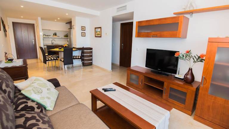 Die Ferienwohnung bietet zwei separate Schlafzimmer, ein Wohnzimmer, eine voll ausgestattete Küche und ein Badezimmer. Zur Ausstattung gehört ein Flachbild-TV. Die Wohnung ist zudem klimatisiert und bietet einen eigenen Pool.