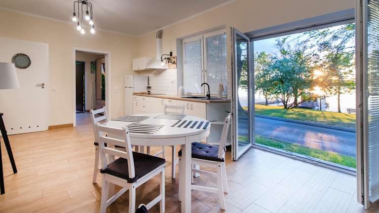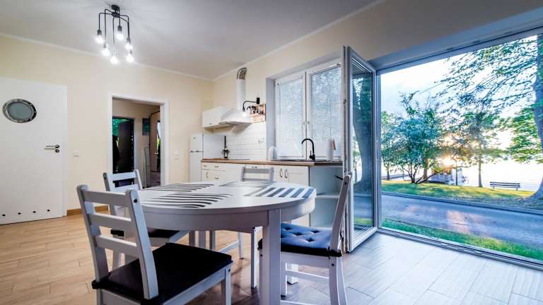 Im Apartament pod Grotem z Widokiem na Jezioro, Oczy Mazur können Sie Ihre eigenen Mahlzeiten in der voll ausgestatteten Küche zubereiten. Alternativ finden Sie in der Umgebung verschiedene Restaurants und Cafés, in denen Sie lokale Spezialitäten genießen können.