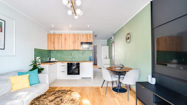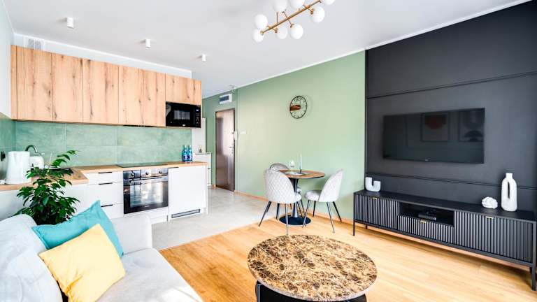 Apartament Pogodny, PW INVEST HOME bietet kostenloses WLAN in der gesamten Unterkunft sowie eine Sonnenterrasse. Es handelt sich um eine Ferienwohnung, die zusätzlich über einen Balkon mit Gartenblick verfügt.