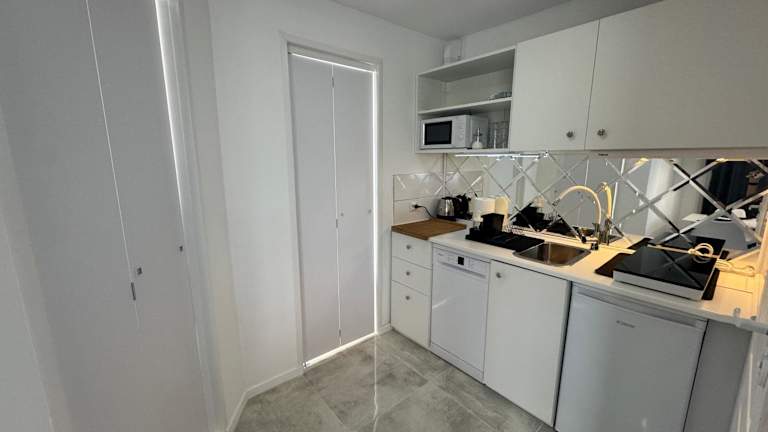 Die Ferienwohnung verfügt über 2 Schlafzimmer, eine Küchenzeile mit Kühlschrank und Geschirrspüler, einen Flachbild-TV sowie einen Sitzbereich. Das Badezimmer ist mit einer Dusche ausgestattet. Handtücher und Bettwäsche werden zur Verfügung gestellt.
