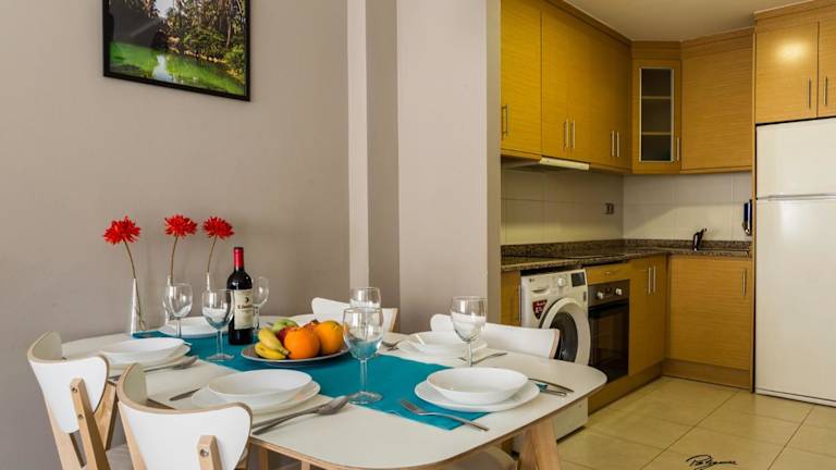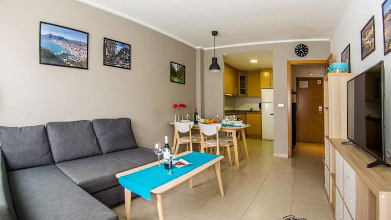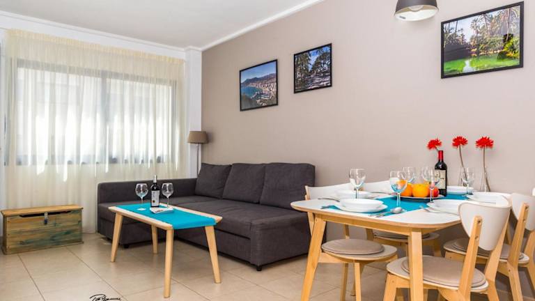 Das klimatisierte Apartment im Apartament Solar verfügt über zwei Schlafzimmer, ein gemütliches Wohnzimmer und eine voll ausgestattete Küche. Die Küche ist mit einem Kühlschrank und einer Kaffeemaschine ausgestattet, so dass die Gäste ihre eigenen Mahlzeiten zubereiten können. Das moderne Badezimmer verfügt über ein Bidet und eine Dusche. Handtücher und Bettwäsche werden im Apartment gestellt, um den Gästen einen angenehmen Aufenthalt zu ermöglichen.