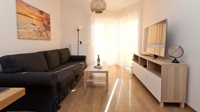 Die Ferienwohnung verfügt über einen Balkon mit Meerblick, ein Schlafzimmer, ein Wohnzimmer, einen Flachbild-TV und eine gut ausgestattete Küchenzeile mit Kühlschrank und Geschirrspüler. Zudem ist ein Badezimmer mit einer Dusche vorhanden. Handtücher und Bettwäsche werden bereitgestellt.