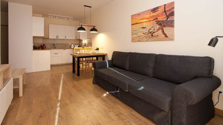 Die Unterkunft befindet sich in Gąski, direkt am Strand Gąski, 2,5 km von Strand Pleśna und 25 km vom Rathaus entfernt. In der unmittelbaren Umgebung gibt es Möglichkeiten zum Fahrradfahren. Der Kolberg Bahnhof liegt 26 km entfernt und die Strandpromenade Kolberg ist 27 km von der Unterkunft entfernt. Der nächstgelegene Flughafen ist der Flughafen Stettin-Goleniów, 130 km entfernt.