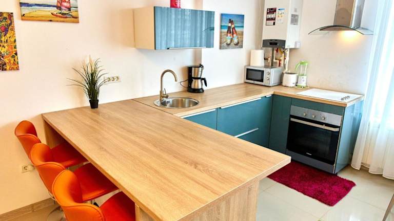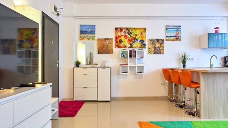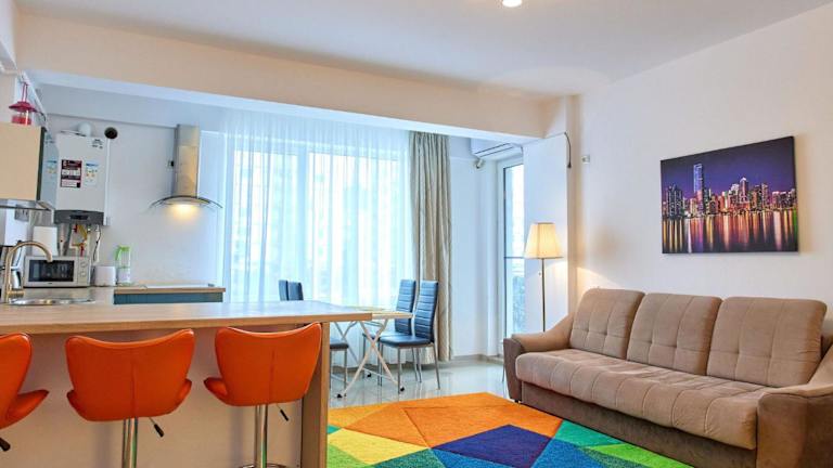 Das Apartament Sunset Beach Astoria ist eine ideale Unterkunft für einen erholsamen Strandurlaub in Năvodari. Das klimatisierte Apartment bietet ein gemütliches Schlafzimmer, ein geräumiges Wohnzimmer und eine voll ausgestattete Küche. Der Zugang zum Strand und kostenfreies WLAN sind weitere Annehmlichkeiten. Die Lage des Apartments ermöglicht es den Gästen, verschiedene Aktivitäten wie Angeln in der Umgebung zu unternehmen. In der Nähe befinden sich auch der Yachthafen Regia und der See Siutghiol. Einkaufsmöglichkeiten im City Park Mall sind ebenfalls leicht erreichbar.