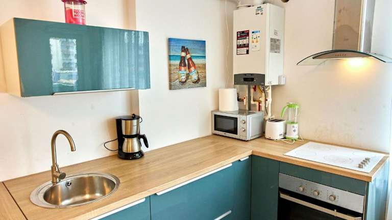 Das klimatisierte Apartment im Apartament Sunset Beach Astoria bietet den Gästen ein komfortables Schlafzimmer, ein geräumiges Wohnzimmer und eine voll ausgestattete Küche mit einem Kochfeld. Das Apartment verfügt außerdem über ein Badezimmer mit einer Dusche und kostenlosen Pflegeprodukten. Handtücher und Bettwäsche werden zur Verfügung gestellt, um den Gästen einen angenehmen Aufenthalt zu ermöglichen. Kostenloses WLAN ist ebenfalls vorhanden.