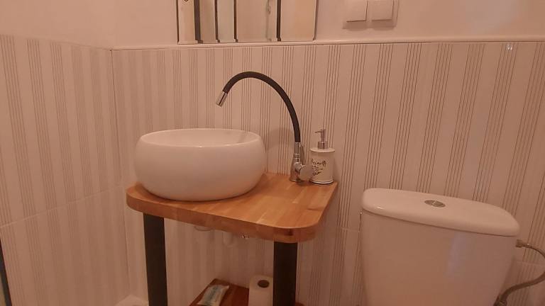 Die Ferienwohnung umfasst ein Wohnzimmer mit einem Flachbild-TV und eine voll ausgestattete Küchenzeile.