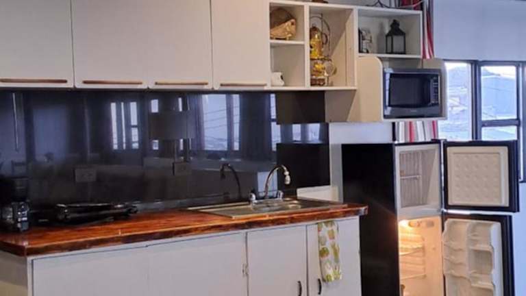 Die Unterkunft ist mit einer Küche ausgestattet, die einen Kühlschrank, eine Mikrowelle und einen Toaster umfasst.