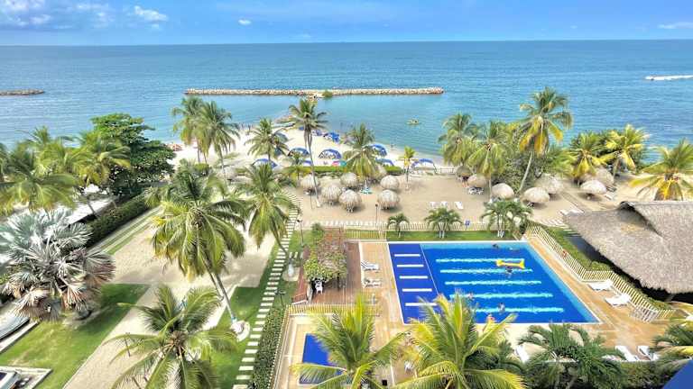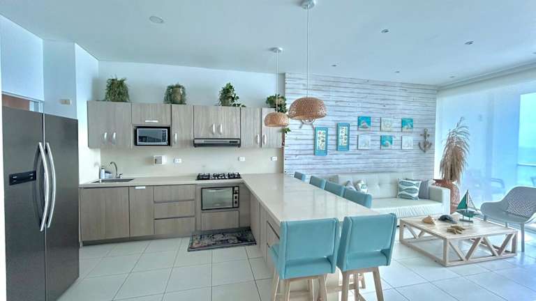 Die Unterkunft Apartamento con vista al mar en Coveñas bietet einen eigenen Pool und eine Küche sowie einen Balkon mit Gartenblick. Sie zeichnet sich durch die direkte Strandlage aus und ermöglicht einen einfachen Zugang zu den umliegenden Stränden.