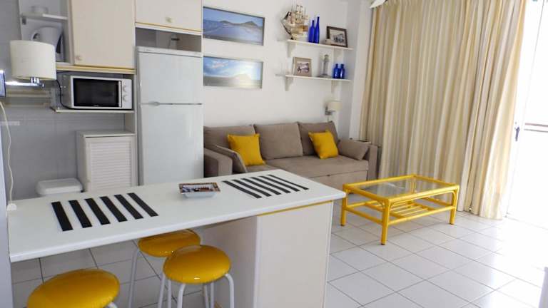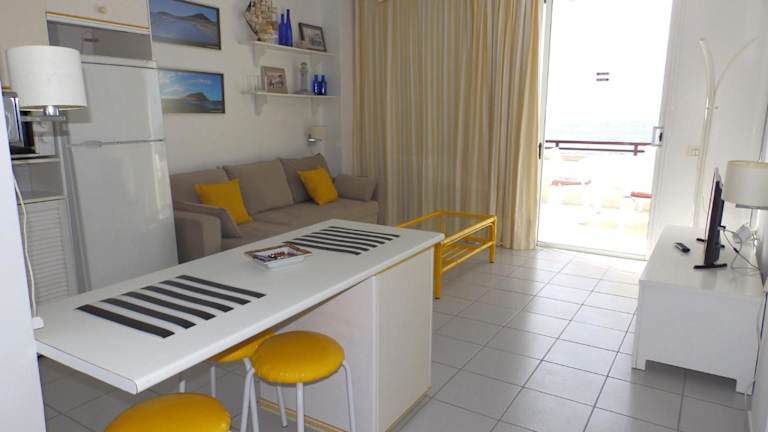 Die Ferienwohnung besteht aus einem Schlafzimmer, einem Wohnzimmer und einem Badezimmer. Zur Ausstattung gehören ein Flachbild-TV, eine gut ausgestattete Küche mit Kühlschrank und Ofen, ein Bidet im Badezimmer sowie eine Terrasse mit Meerblick. Handtücher und Bettwäsche werden bereitgestellt.