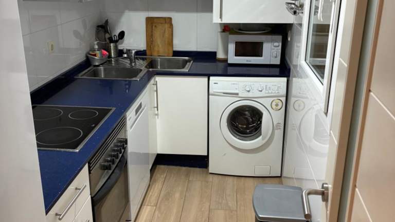 Das klimatisierte Apartment im Residencial Puerta Del Mar verfügt über 2 Schlafzimmer und eine Terrasse. Die Unterkunft ist geräumig und bietet einen komfortablen Aufenthalt. Zur Ausstattung gehören ein Flachbild-TV, eine voll ausgestattete Küche mit Kühlschrank, ein Sitzbereich, eine Waschmaschine und 2 Badezimmer mit Bidet, Dusche und Badewanne. Die Apartments bieten alles, was Sie für einen angenehmen Aufenthalt benötigen.