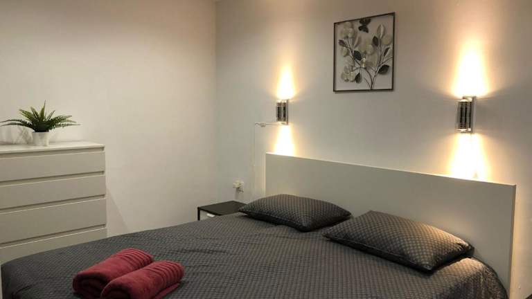 Die Ferienwohnung besteht aus zwei Schlafzimmern, einem Wohnzimmer und einer voll ausgestatteten Küche, die über einen Kühlschrank und eine Kaffeemaschine verfügt. Das Badezimmer ist mit einer Badewanne und einem Haartrockner ausgestattet. Handtücher und Bettwäsche sind in der Unterkunft verfügbar.