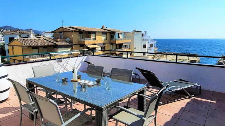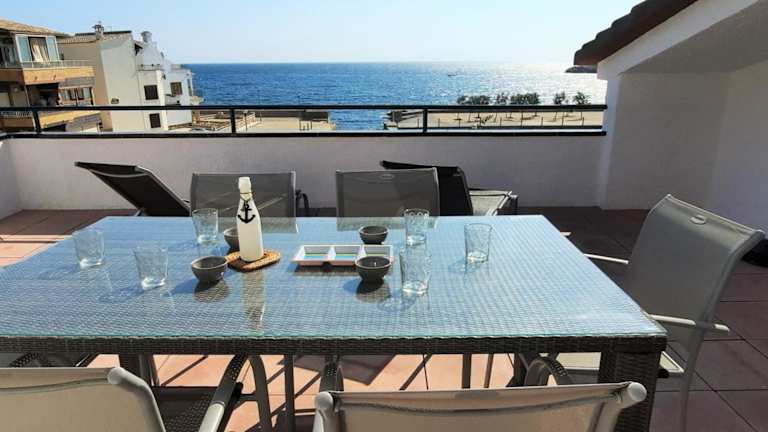 Die Unterkunft Ático excepcional frente al mar en Sant Carles, Llançà - Costa Brava - ES-170-40 bietet Übernachtungsmöglichkeiten direkt am Strand mit einem Zugang zu einer Terrasse. Sie ist eine Nichtraucherunterkunft und es sind keine Feiern wie Junggesellenabschiede erlaubt. Die Unterkunft ist für Gäste ab 18 Jahren zugänglich, Haustiere sind erlaubt.