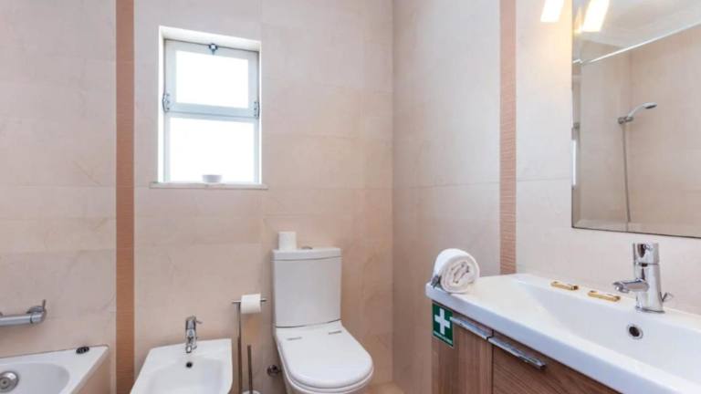 Die Wohnung bietet zwei Schlafzimmer, ein Wohnzimmer und ein Badezimmer mit Badewanne sowie kostenlosen Pflegeprodukten. Handtücher und Bettwäsche werden zur Verfügung gestellt.