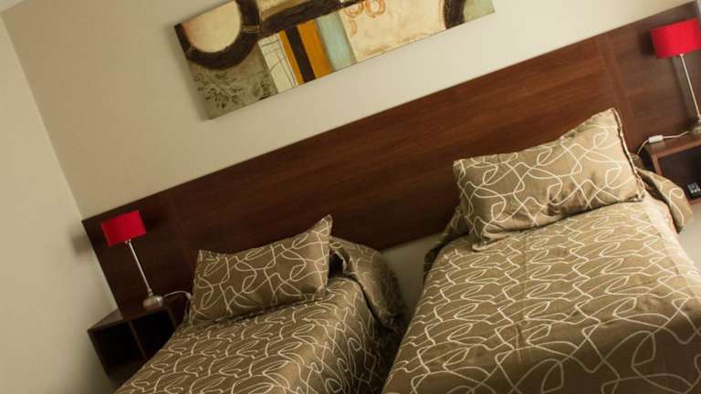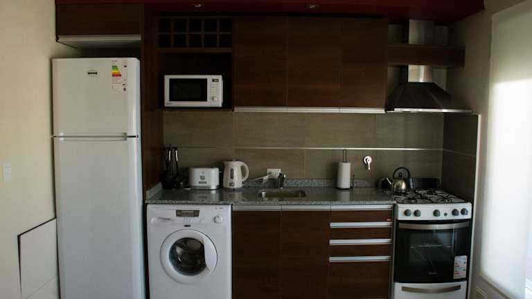Das Apartamento Orquera liegt über dem Büro eines Immobilie-Büros, dessen Mitarbeiter die Apartments verwalten. Dort gibt es den Schlüssel und das Tor für den Parkplatz hinter dem Haus wird geöffnet. Ausserhalb der Öffnungszeiten gibt es eine Telefonnummer. Das Apartament liegt in der Stadt Sarmiento (die nicht sehr gross ist) in einem Wohnviertel.