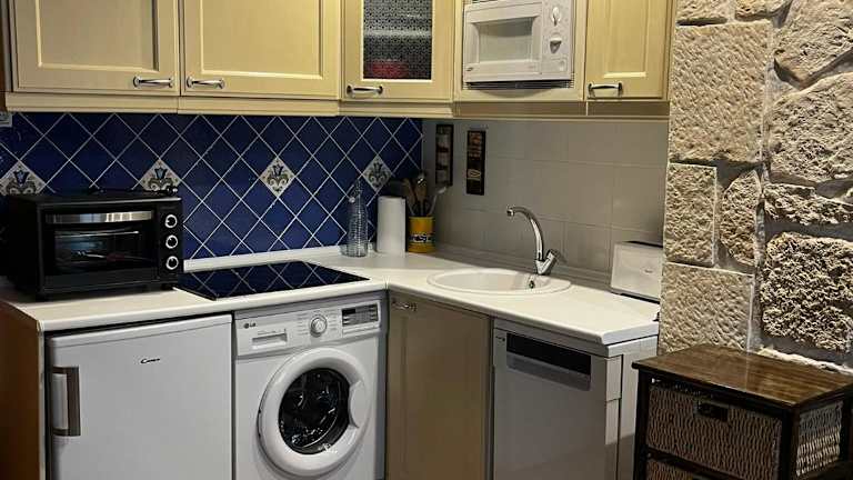 Das Apartment bietet Platz für bis zu vier Personen und verfügt über zwei gemütliche Schlafzimmer. Im Wohnzimmer finden Sie einen Flachbild-TV und eine komfortable Sitzecke. Die Küchenzeile ist komplett ausgestattet, so dass Sie Ihre eigenen Mahlzeiten zubereiten können. Das Badezimmer ist mit einem Bidet und einer Badewanne ausgestattet. Handtücher und Bettwäsche werden Ihnen zur Verfügung gestellt.