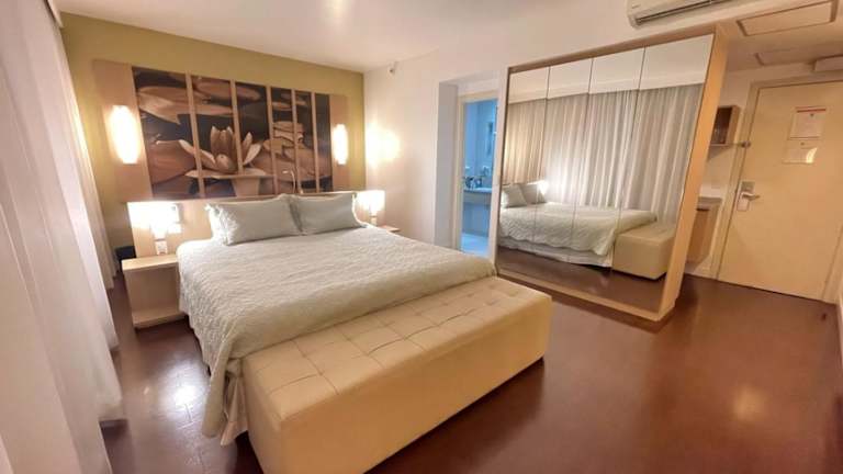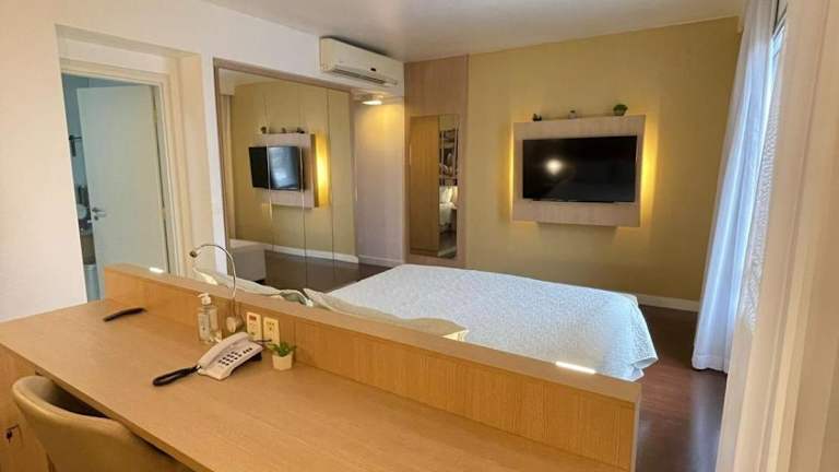 Das Apartamento suíte im Hotel Mercure bietet verschiedene Annehmlichkeiten wie kostenloses WLAN, Klimaanlage, einen Außenpool sowie ein Fitnesscenter. Den Gästen steht ein kostenloser Privatparkplatz zur Verfügung und die Rezeption ist rund um die Uhr besetzt. Die Unterkunft stellt zudem Spa- und Wellnesseinrichtungen bereit, die eine Sauna und einen Whirlpool umfassen.