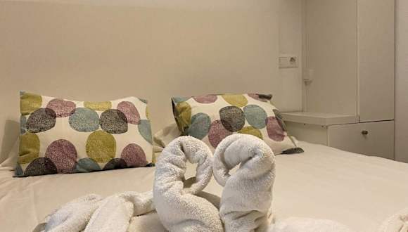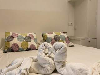 Die Ferienwohnung verfügt über ein Schlafzimmer, ein Wohnzimmer, eine voll ausgestattete Küche mit Mikrowelle und Kaffeemaschine sowie ein Badezimmer mit Dusche und Haartrockner. Zur Ausstattung gehören auch Klimaanlage, Handtücher, Bettwäsche und schallisolierte Zimmer.