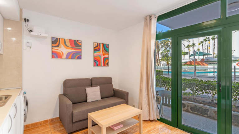 Apartamento Yumbo Dunas bietet Übernachtungsmöglichkeiten mit Gartenblick, einem Außenpool und einem eigenen Garten. Die Unterkunft ist mit kostenlosem WLAN ausgestattet. Die Wohnung hat eine Terrasse mit Stadtblick und besteht aus einem Schlafzimmer, einem Wohnzimmer, einem TV und einer gut ausgestatteten Küche mit Kühlschrank und Ofen. Ein Badezimmer mit Dusche ist ebenfalls vorhanden. Handtücher und Bettwäsche werden bereitgestellt.