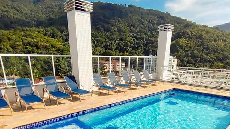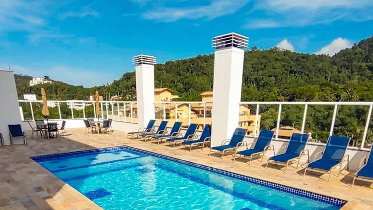 Apartamentos 300m Praia das Toninhas - vista para a serra do mar bietet eine Unterkunft in Form von Apartments mit verschiedenartigen Annehmlichkeiten. Zu den zusätzlichen Einrichtungen gehören kostenloses WLAN und ein Privatparkplatz. Gästen steht auch eine Sauna zur Verfügung sowie ein Außenpool und eine Terrasse zum Entspannen.